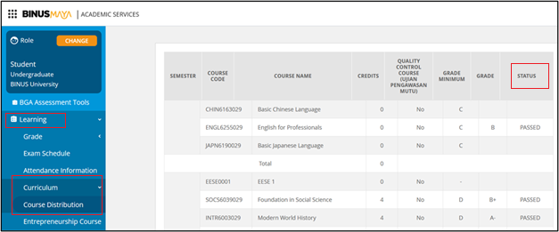Bagaimana jika ingin mengecek distribusi mata kuliah di BINUSMAYA?