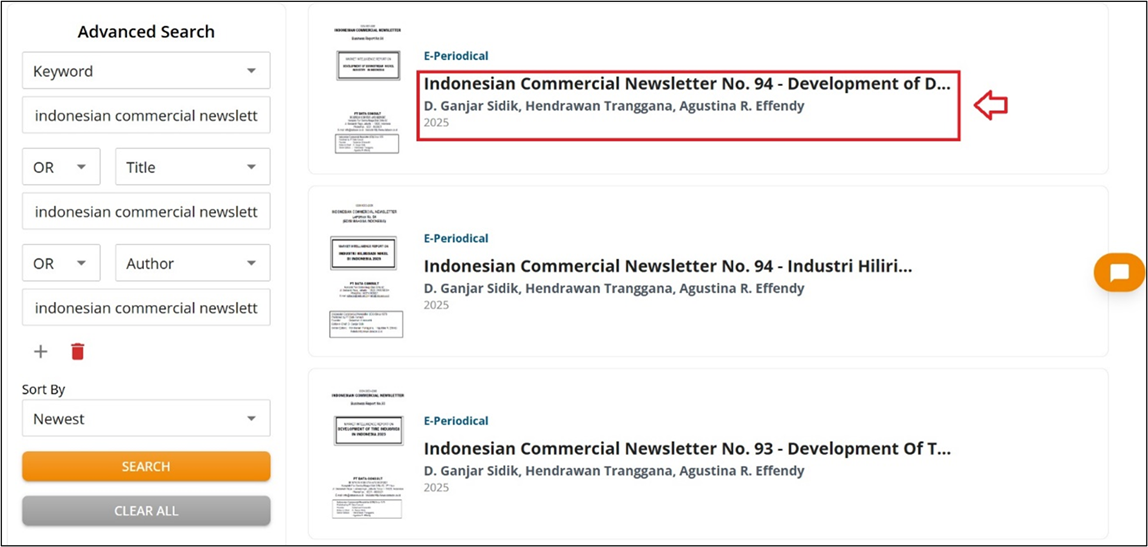 Cara Akses Indonesian Commercial Newsletter di Newlibrary