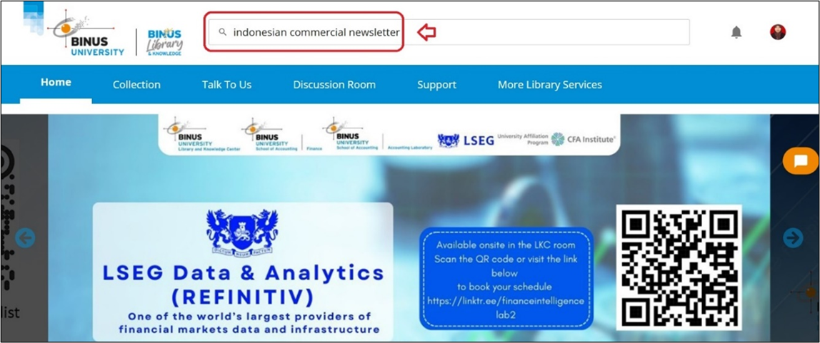 Koleksi ini dapat diakses oleh para BINUSIAN melalui website Library and Knowledge Center (LKC) dengan cara sebagai berikut: