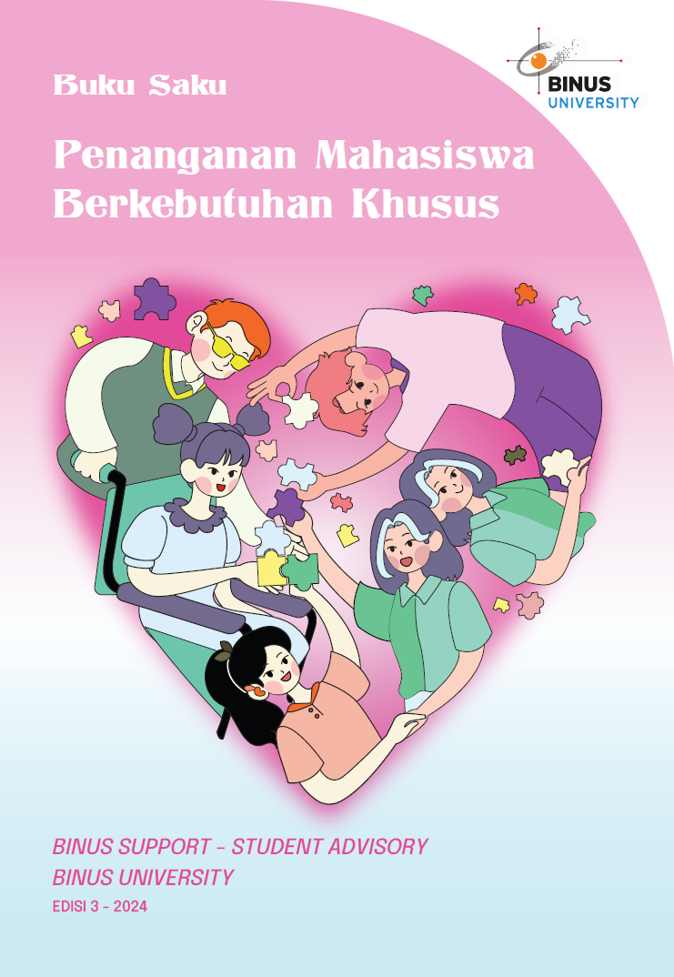 Agar dapat lebih membantu civitas akademika di BINUS University di dalam berinteraksi dan melayani mahasiswa berkebutuhan khusus/disabilitas, sub unit layanan disabilitas menyusun sebuah buku saku: Buku Saku Disabilitas 2024