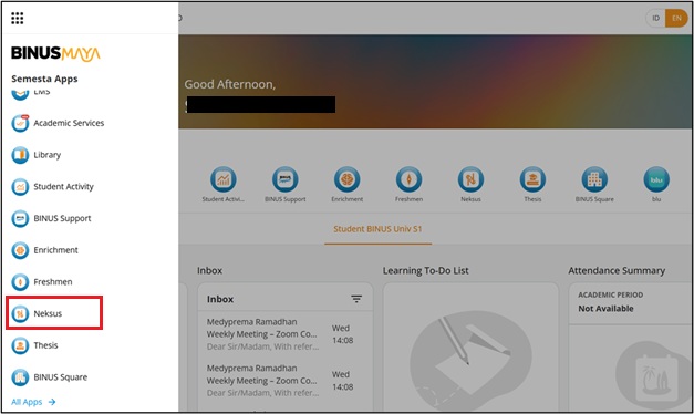 Silakan login ke BINUSMAYA, kemudian ikuti alur berikut: