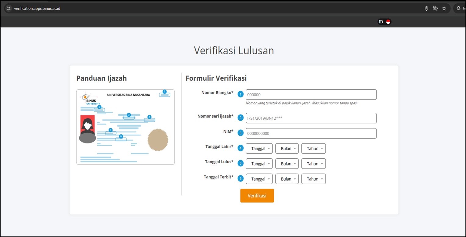 Silakan mengakses halaman verifikasi ijazah melalui tautan berikut: