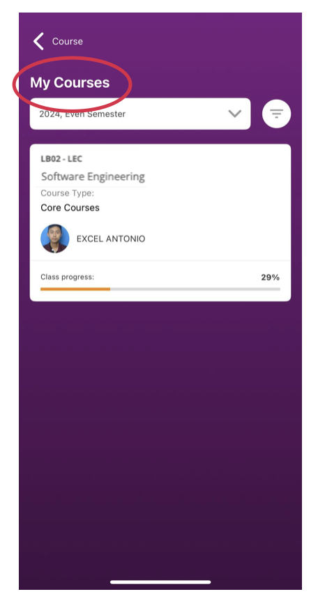(ii.b) Lalu akan muncul page “My Courses”, tap pada salah satu “Course” yang ingin dicek.