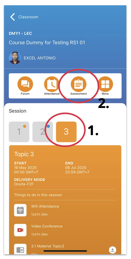 (ii.c) Pilih sesi pada “Session”, tap pada “Assessment”