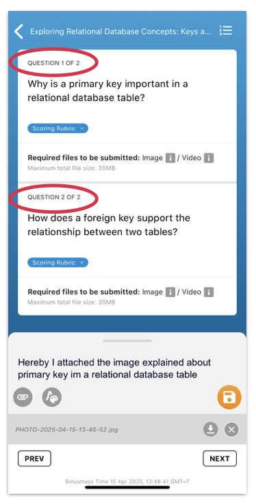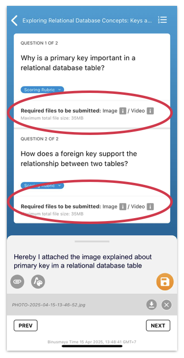 (ii) Tampilan saat jawaban yang diminta membutuhkan attachment, pada case di atas attachment yang diminta yaitu image dan video.