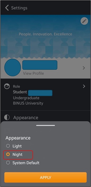 Panduan Night Mode BINUSMAYA Mobile Student