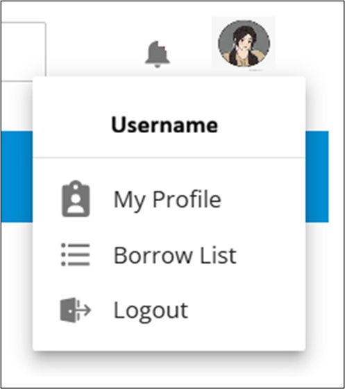 Menu Borrow List berada di bagian pojok kanan atas website dan dapat diakses melalui ikon yang tersedia.