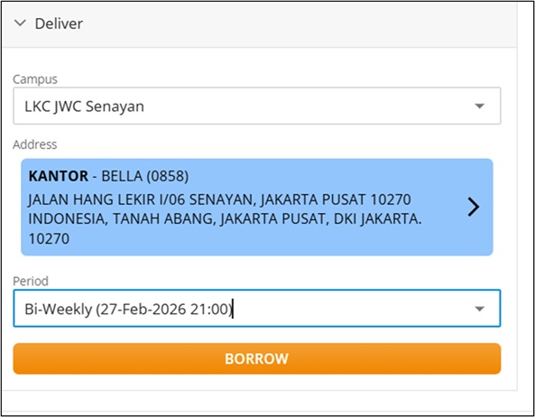 Setelah menyelesaikan pengisian layanan Deliver, Anda akan otomatis diarahkan ke menu Borrow List.