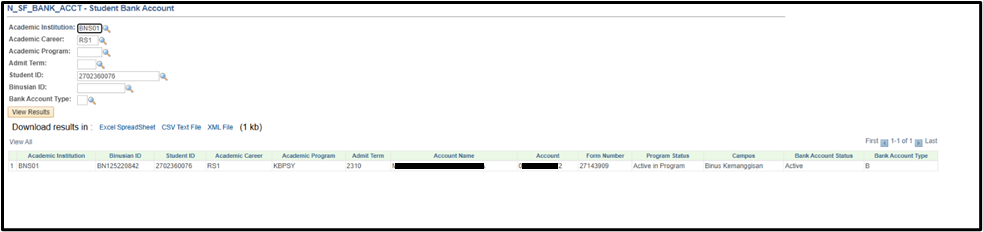 - Informasi akun bank mahasiswa akan ditampilkan sesuai data yang diisi sebelumnya.