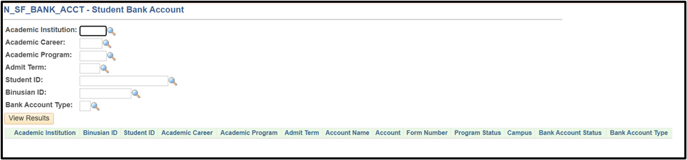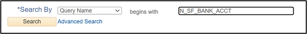 - Ketik N_SF_BANK_ACCT di kolom pencarian Query Name, lalu klik Search.