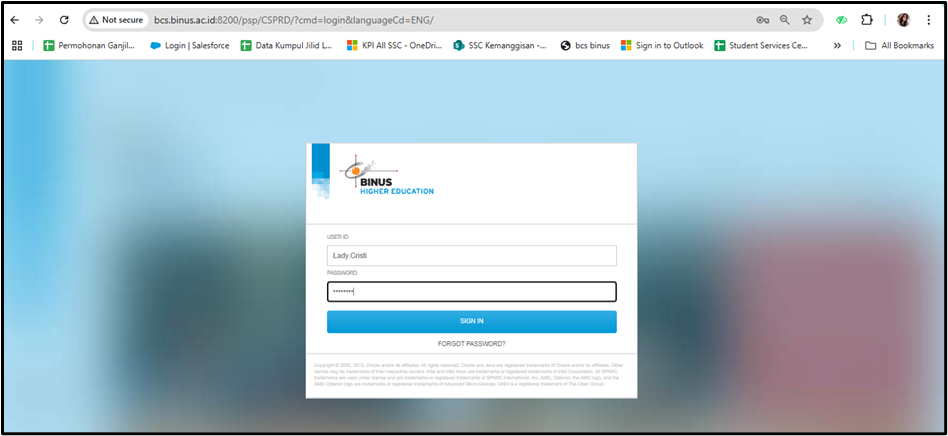 - Login ke http://bcs.binus.ac.id menggunakan User ID dan Password.